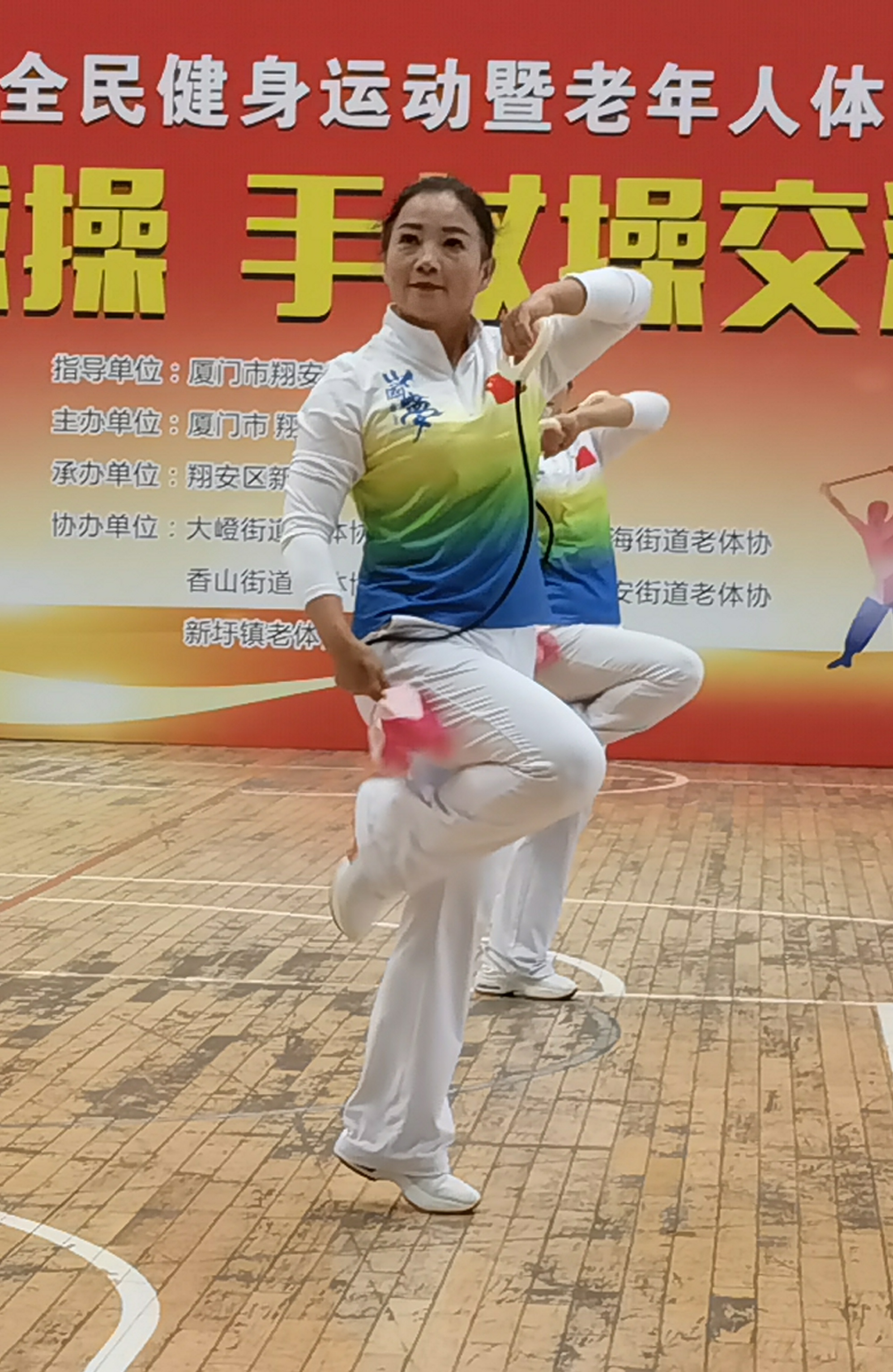 身兼区老体协委员、操舞专委会主任、街道关工委副主任、老体协主席、区街两级辅导站站长多重职责,她全力贯通老年健身“最后一公里”:带队参加2023年厦门市第十一届老健会闭幕式大型表演,主导2024年翔安区首届老健会开幕式展演,操刀2024年新店街道首届老健会开幕式千人展演, 年均组织新春健步走、重阳节等主题展演20余场,推动操舞活动深入全区90%社区,惠及超万人次。
