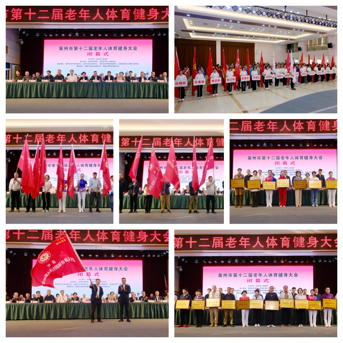 2025年11月28日下午,泉州市老干部活动中心气氛庄重而热烈,泉州市第十二届老年人体育健身大会闭幕式在此举行,为这场历时7个多月的老年体育盛会画上圆满句号。泉州市人民政府副市长黄文捷,市老体协主席洪泽生、常务副主席吕竞、副主席陈益,泉州市政府副秘书长张劲竹,泉州市体育局书记郑宏谋、局长汪水永,以及各组委会成员单位领导出席闭幕式。