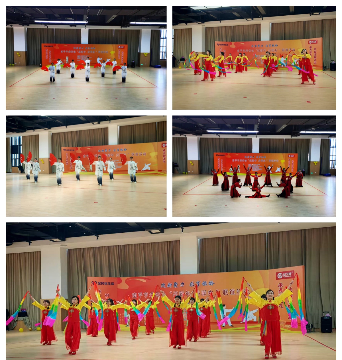展演在萨克斯演奏《党啊,亲爱的妈妈》、《歌唱祖国》悠扬激昂的旋律中拉开序幕,熟悉的曲调瞬间点燃全场气氛。随后,15个精心编排的节目轮番登场,各有亮点:彩带舞《蒸蒸日上》中,彩绸翻飞如缤纷登场,舞者身姿轻盈,舞出了对美好生活的憧憬;49式武当太极剑刚柔并济,剑光流转间尽显侠骨柔情;陈氏精编26式太极拳舒缓沉稳,一招一式韵味悠长;太极功夫扇《扇舞芳华》开合有声,红扇舞动间绽放别样风采;气舞《我的祖国》饱含深情,每个动作都传递着对祖国的热爱;功气球竞赛套路50式《听海》中,队员们精准操控气球,灵动姿态宛如海浪轻舞;群舞《茶山春》充满生活气息,舞者身着特色服饰,演绎出茶山春早的灵动;36式太极刀《精忠报国》气势磅礴,刀影飒爽间尽显豪迈气概;健身气功《导引养生功十二法》舒缓养生,展现出传统养生文化的独特魅力。最后,全体队员身着统一服装集体表演24式太极拳,大家动作整齐划一、舒展流畅,扎实的功底与专注的神情感染了在场每一个人,将活动推向高潮,现场掌声、欢呼声此起彼伏,久久不息。
