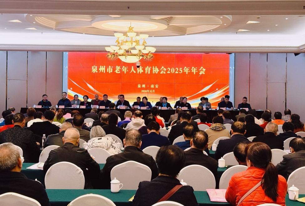 2026年1月25日,泉州市老体协2026年工作会议在南安召开。泉州市人大常委会副主任颜丽明,市政府副市长黄文捷,市政协副主席周真平,泉州市老体协主席洪泽生,市体育局党组书记郑宏谋、局长汪水永,南安市副市长廖徐伟以及市直涉老部门的领导出席了会议。省老体协领导王美香应邀参加会议。会议全面总结了2025年度全市老年体育工作,表扬先进,部署任务,并顺利完成协会理事会增补选举工作。省、市相关领导及全市各级老体协代表共计120余人参加会议。