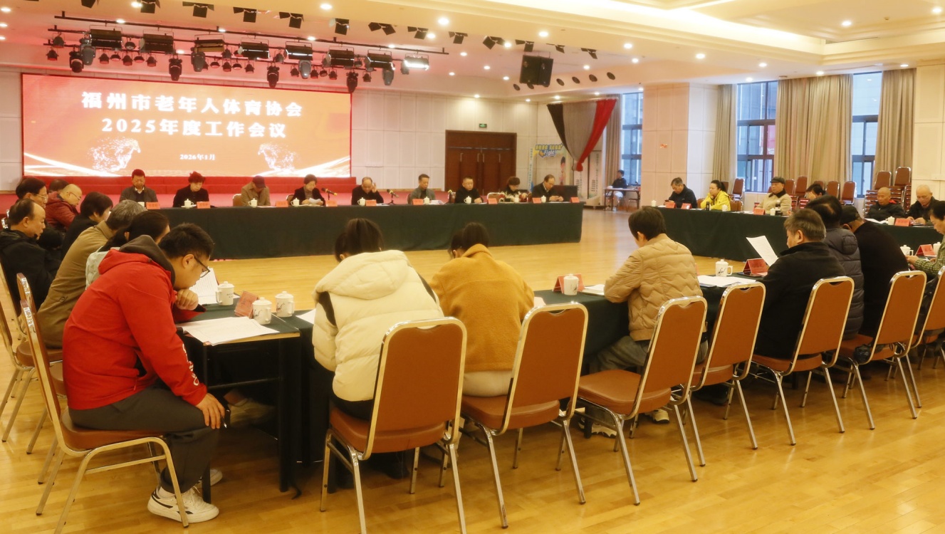 2026年1月27日,福州市老体协在市老年人体育活动中心召开2025年度工作会议,全面总结过去一年成绩,系统部署新一年任务。市老体协班子成员,各县(市)区、市直机关老体协主席和秘书长及各项目专委会主任、负责人参加会议。