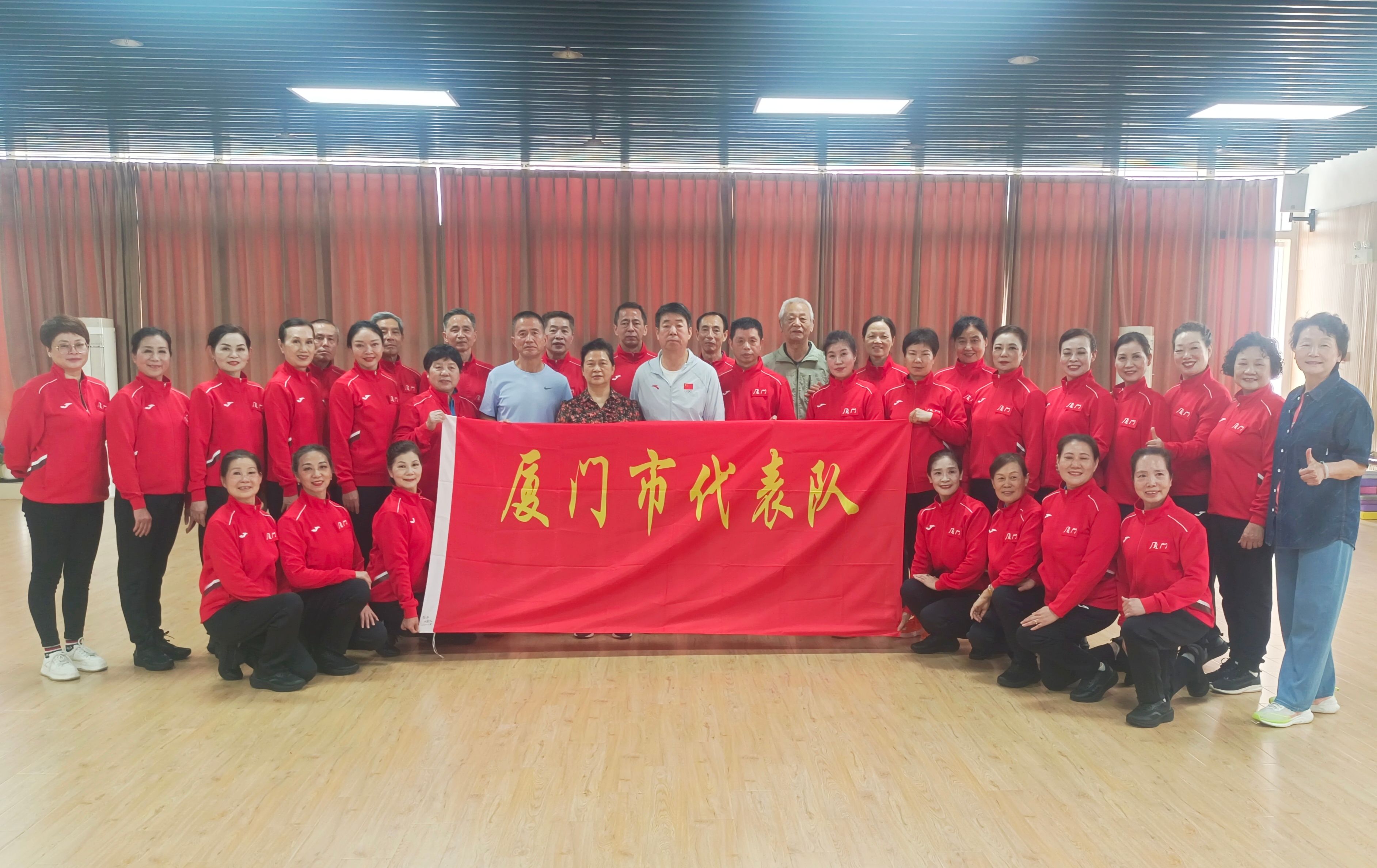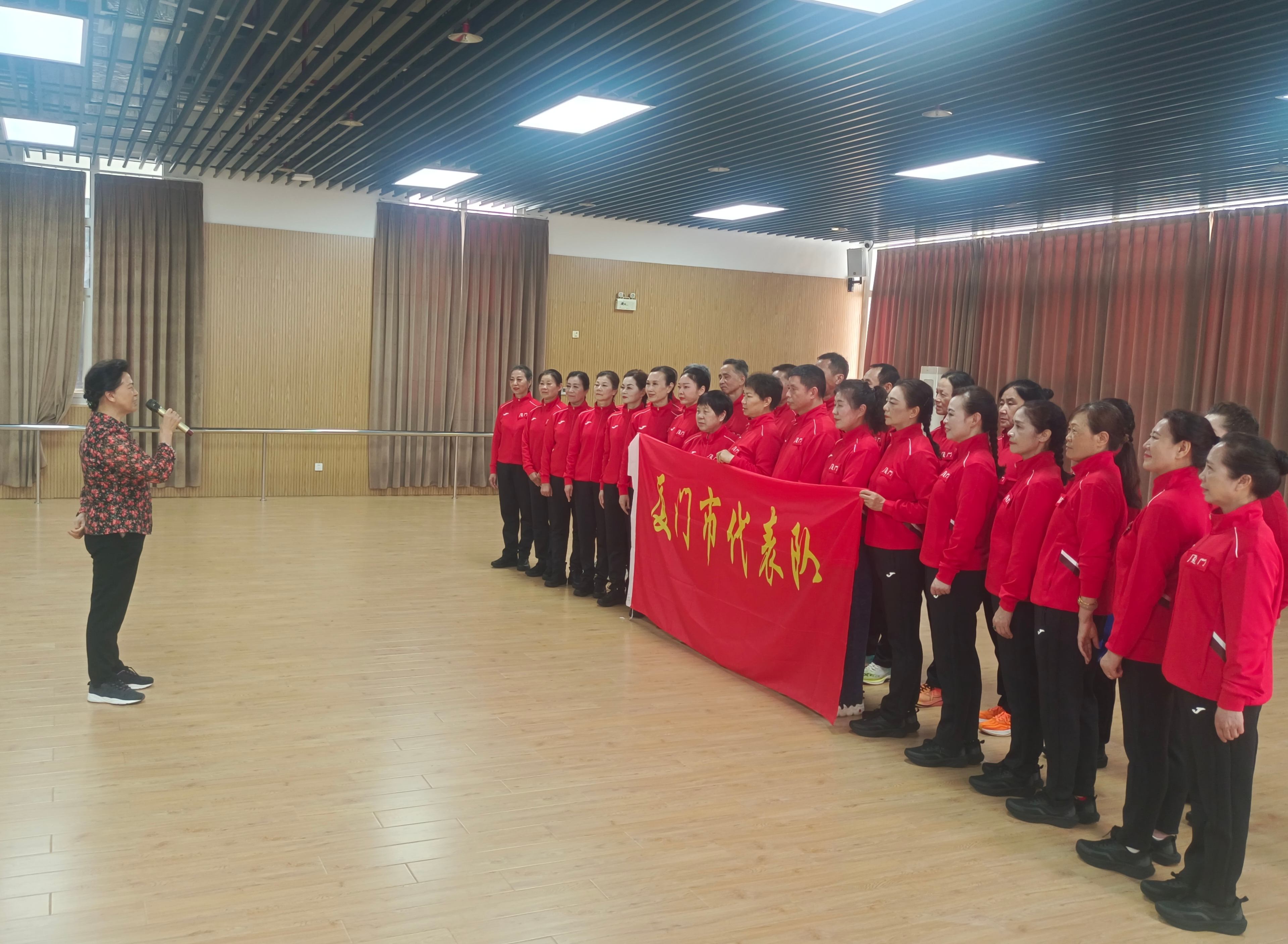 厦门市老体协为参加全国老健会厦门持杖健走代表队举行出征授旗仪式