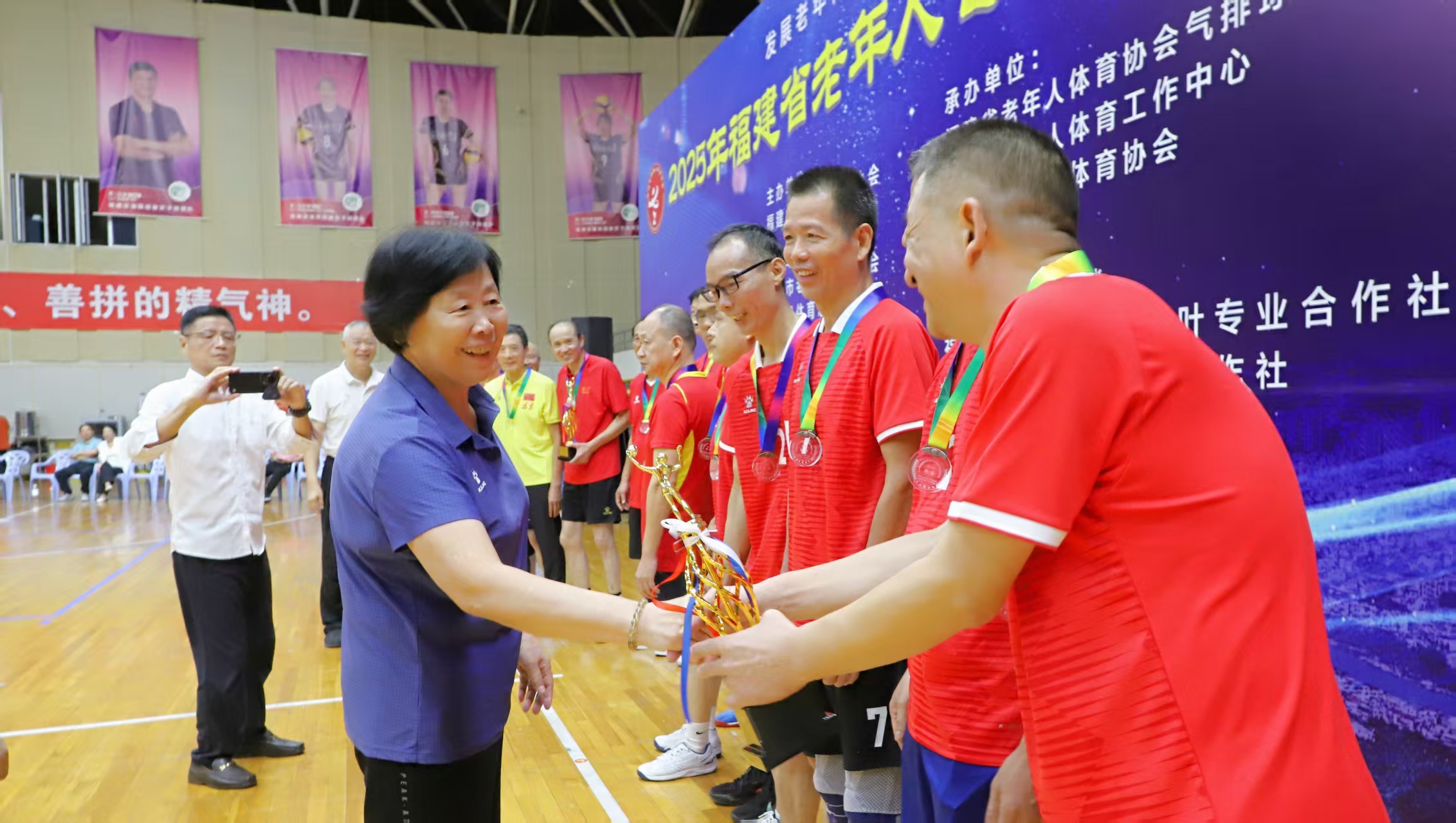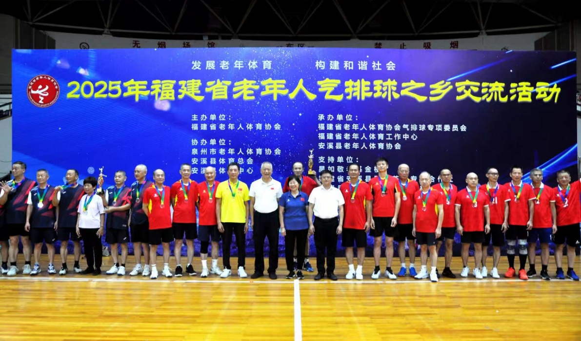 9月28日下午,为期三天的2025年“福建省老年人气排球之乡”交流活动在安溪县梧桐体育馆圆满闭幕。省老体协主席王美香、副主席陈震,中国排球协会副主席、省老体协气排球专委会主任徐正国,省老体协气排球专委会副主任肖青松、陈铁成,泉州市老体协主席洪泽生、常务副主席陈益,安溪县副县长卢荣斌,安溪县老体协主席陈炯仁等出席闭幕式并为获奖队伍颁奖。