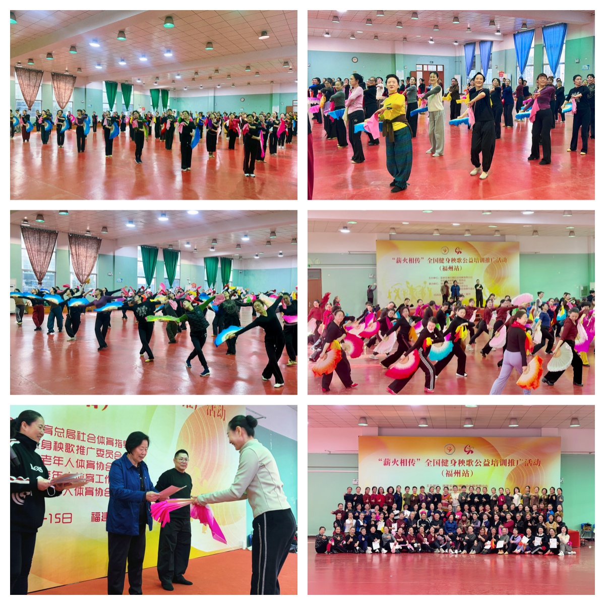 为深入贯彻国家体育总局社会体育指导中心“薪火相传”全国健身秧歌公益推广活动精神,进一步厚植全省健身秧歌项目发展土壤,扩大全民健身运动覆盖面,1月12日至15日,由国家体育总局社会体育指导中心、全国健身秧歌推广委员会主办,福建省老体协、福建省老年人体育工作中心、福建省老体协操舞专委会联合承办的“薪火相传”全国健身秧歌公益培训推广活动(福州站),在省老年人体育中心举办并圆满结业。来自全省各设区市、平潭综合实验区,以及省直机关、高校老体协的110余名健身秧歌骨干齐聚榕城,系统研习第九套健身秧歌规定套路《热土秧歌》。