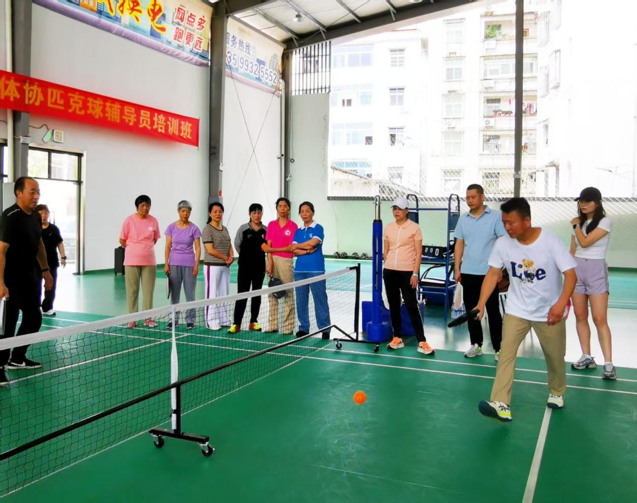5月15日龙岩市新罗区老年人体育协会在新罗区老干部活动中心综合馆举办2025年匹克球辅导员培训班。来自全区各镇、街的30余名老年体育骨干及匹克球爱好者参加培训,现场气氛热烈,学员收获满满。