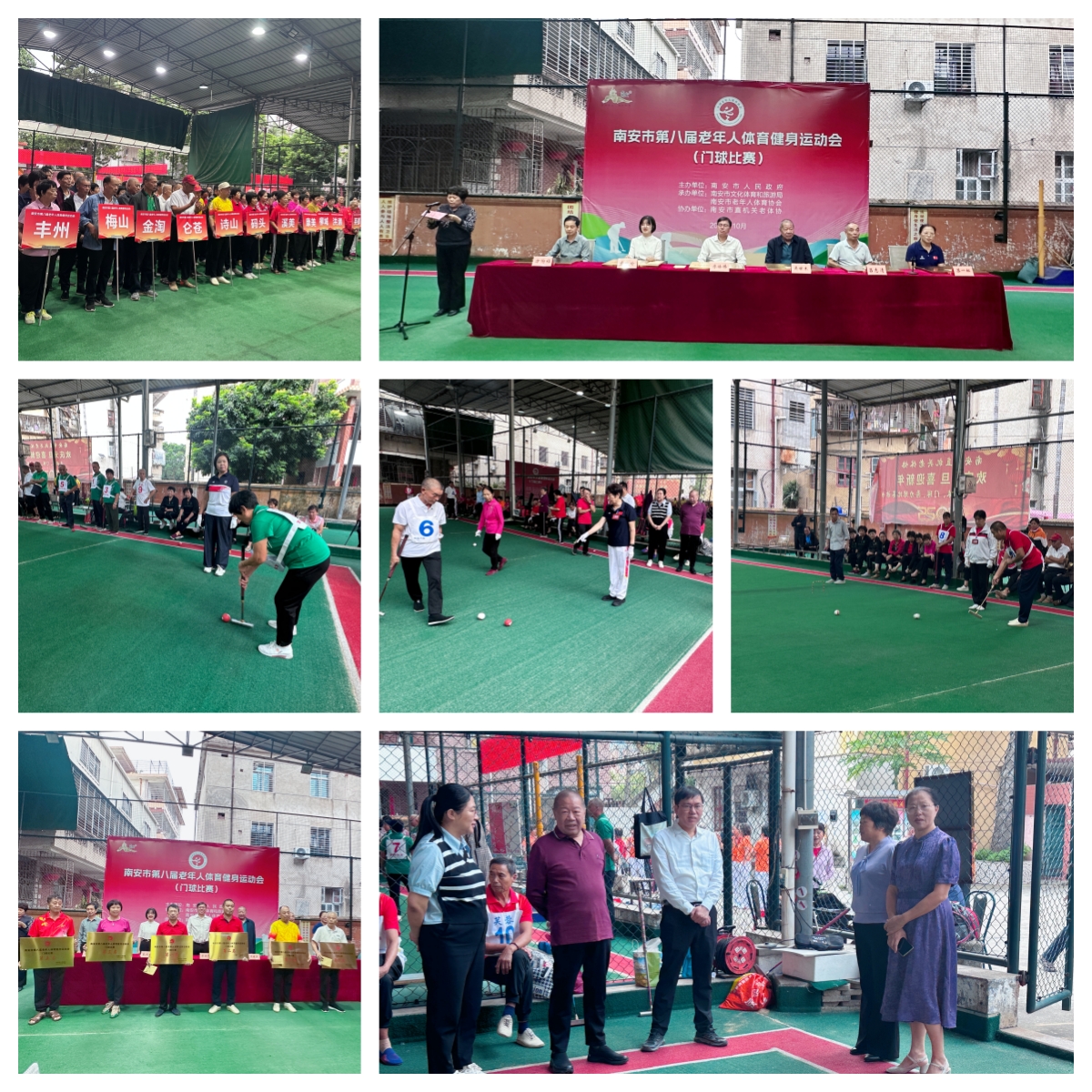 由南安市人民政府主办,南安市文体旅游局、市老体协承办,市直机关老体协协办的南安市第八届老健会门球比赛于10月27日至28日在市直机关老体协门球场举行。南安市政府副市长廖徐伟到场观看指导。来自溪美、柳城、仑苍、英都、金淘、诗山、码头、梅山、洪濑、康美、丰州、霞美等乡镇(街道)12支球队运动员、教练员、裁判员、工作人员100多人齐聚一起,实战深入探索,提升门球技艺。