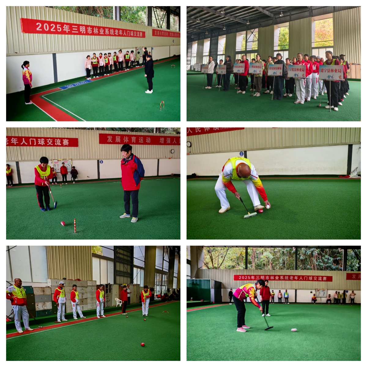 11月27日至28日,2025年三明市林业系统老年人门球交流赛在三元区明湖休闲运动中心举办,来自全市林业系统7支代表队50余名老年门球爱好者齐聚赛场,以球为媒切磋技艺,共赴一场活力满满的体育赛事。经过两天11场的角逐,最终,明溪县林业局代表队勇夺桂冠,将乐县林业局代表队斩获亚军,将乐国有林场与尤溪县林业局代表队并列季军。