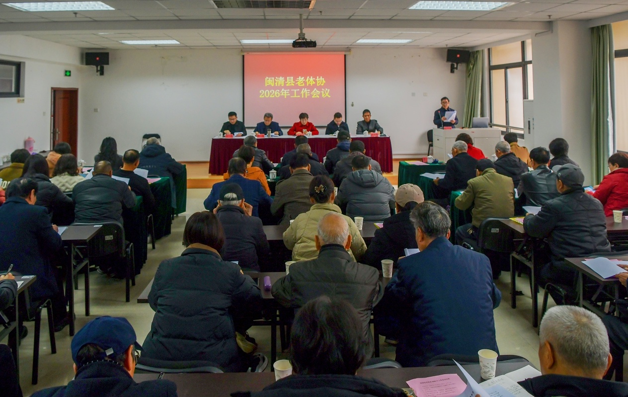 闽清县委常委、宣传部部长刘鸿,闽清县委常委、政法委书记、县政府副县长冯青,县文体旅局局长刘杰等到会指导。会议由县老体协副主席林忠提主持。会议总结了2025年县老体协和辅导站工作,并对2026年工作做了具体部署。