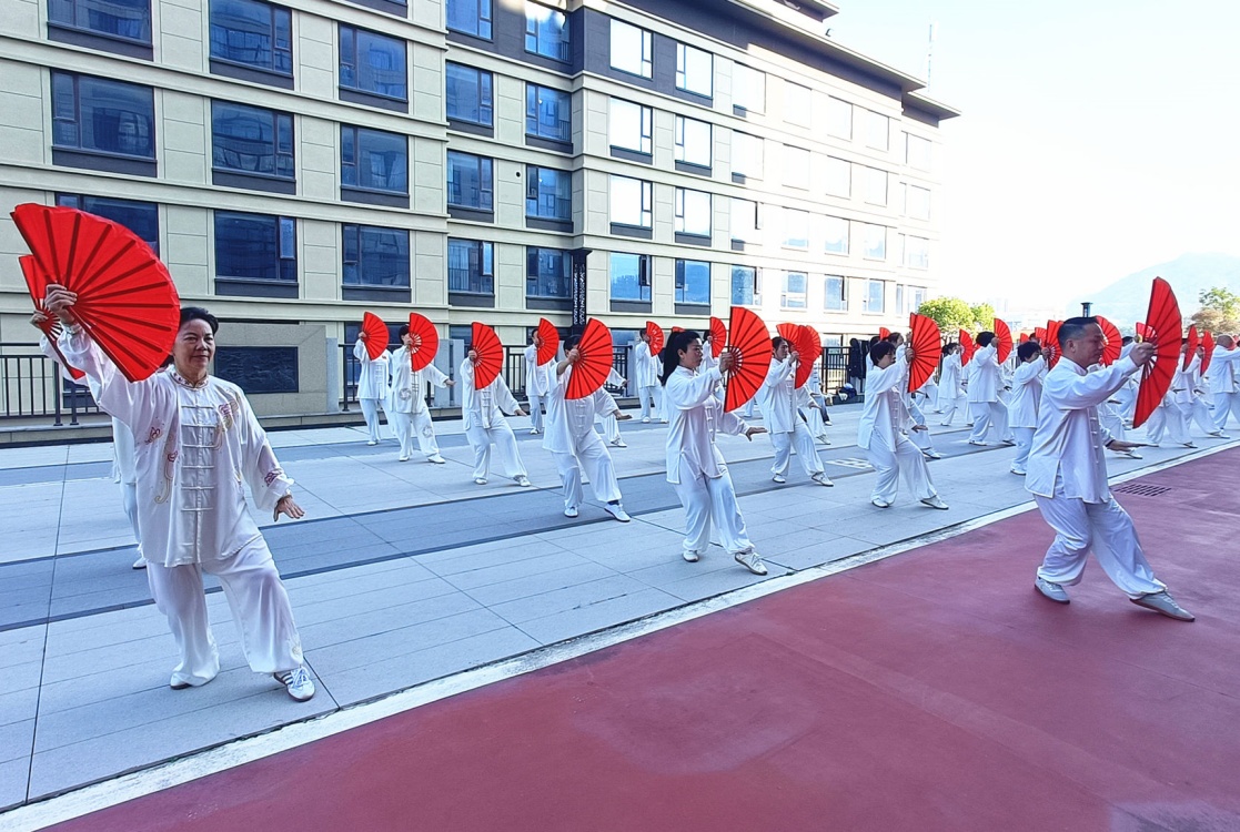 活动中,太极爱好者们精神抖擞,身着整齐服饰,依次登场展示3个集体项目—24式太极拳舒缓柔和、意蕴悠长,42式太极拳刚柔相济,开合有度,太极功夫扇扇影翩跹,气势如虹。随后,优秀队员同台展示了观音拳、太极笔、陈式太极扇等项目。队员们精神饱满,动作舒展,一招一式如行云流水,将太极拳刚柔并济、以柔克刚的独特韵味展现得淋漓尽致。旁观的“太极粉”也跃跃欲试,在一旁依样比划,很是投入。现场掌声不断,气氛热烈,尽显“全国老年太极拳之乡”的深厚底蕴。