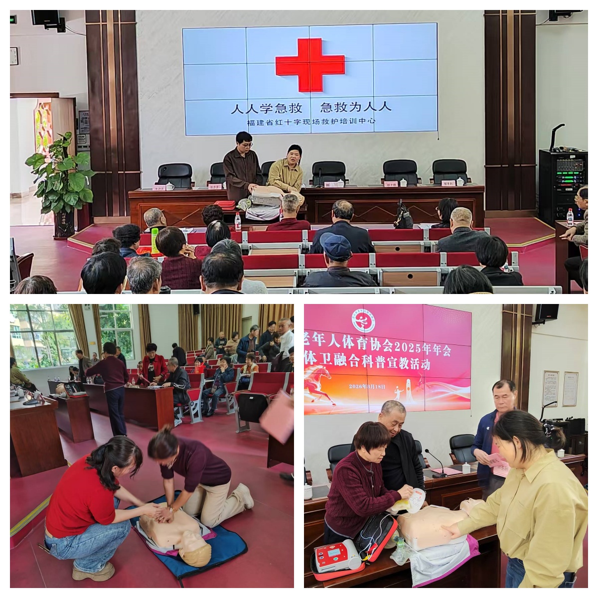 为深入推进体卫融合健康服务,切实提升老年群体应急救护能力,保障老年人生命安全与身体健康,2026年3月18日日,晋江市老体协组织开展体卫融合科普宣教—心肺复苏专题讲座,全市老体协骨干成员踊跃参与。