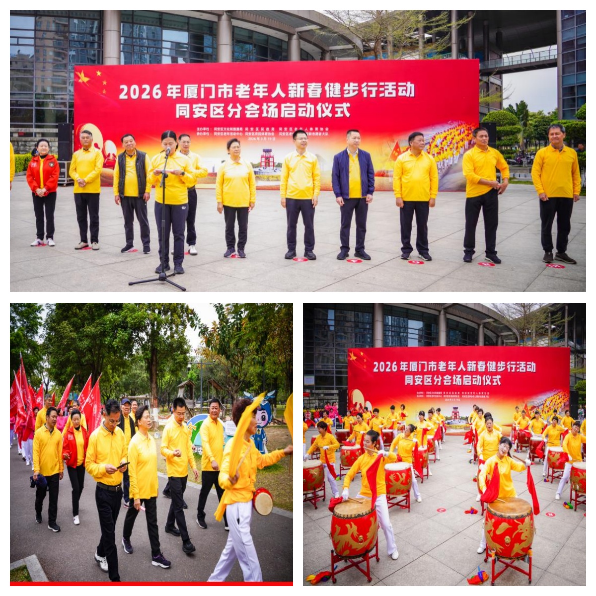 为丰富广大老年人体育生活,倡导健康文明的生活方式,推进“老年人康乐家园”创建及健康同安建设,营造欢乐祥和、健康向上的新春氛围,3月19日上午,由同安区文化和旅游局、同安区民政局、同安区老体协主办,同安区老年活动中心、区农民体育协会、区老体协东山银龄志愿者大队协办的2026年厦门市同安区老年人新春健步行活动在同安影剧院广场举行。参加此次健步行活动的有各镇、街老体协、区直机关行业系统老体协和区老体协各专委会代表队共950多人,以健步走的形式舒展身心、共迎新春,展现出新时代同安老年人昂扬向上的精神风貌。