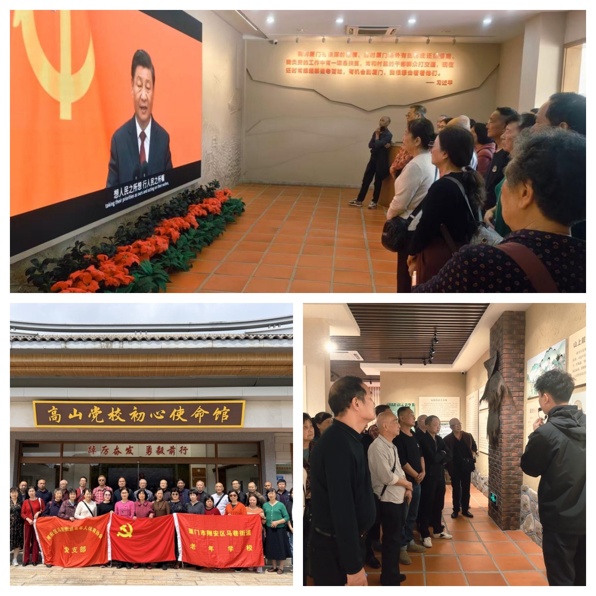 清晨,一行人首先来到莲花镇军营村,这里曾是习近平总书记两度调研指导的地方。在高山党校初心使命馆,老同志们认真聆听讲解,驻足观看展陈,重温习近平总书记深入基层、心系百姓的为民情怀。
